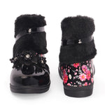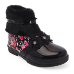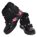 Add a pop of style to her step! These trendy boots feature floral sparkle, fluffy cuffs, and an easy zip closure for quick wear. Perfect for playdates, outings, or dressing up. Available in 5 fashionable colors every little trendsetter will love!