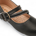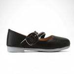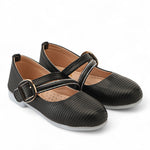 Step into style with Freeplay Girls Buckled Bellies, crafted in textured faux leather with a dazzling dual-strap design. A shiny buckle and crystal embellishments add the perfect party sparkle. Lightweight and comfy for all-day wear, they’re ideal for both smart casual and festive looks. Available in black, beige, and pink for girls aged 2.5–9 years.