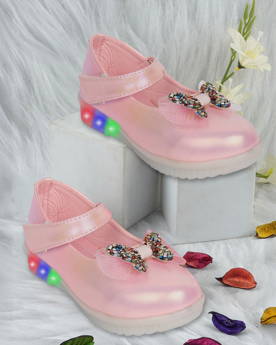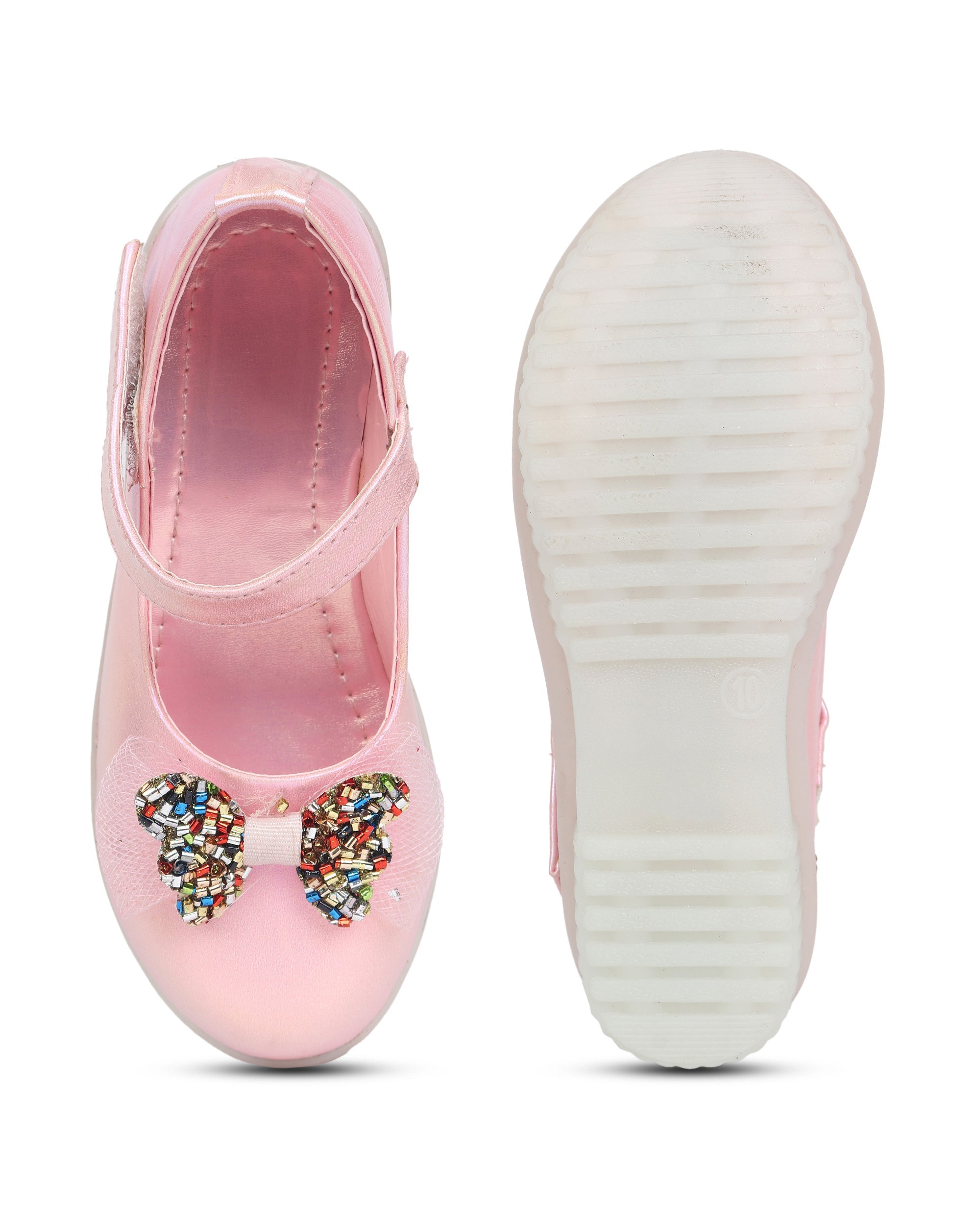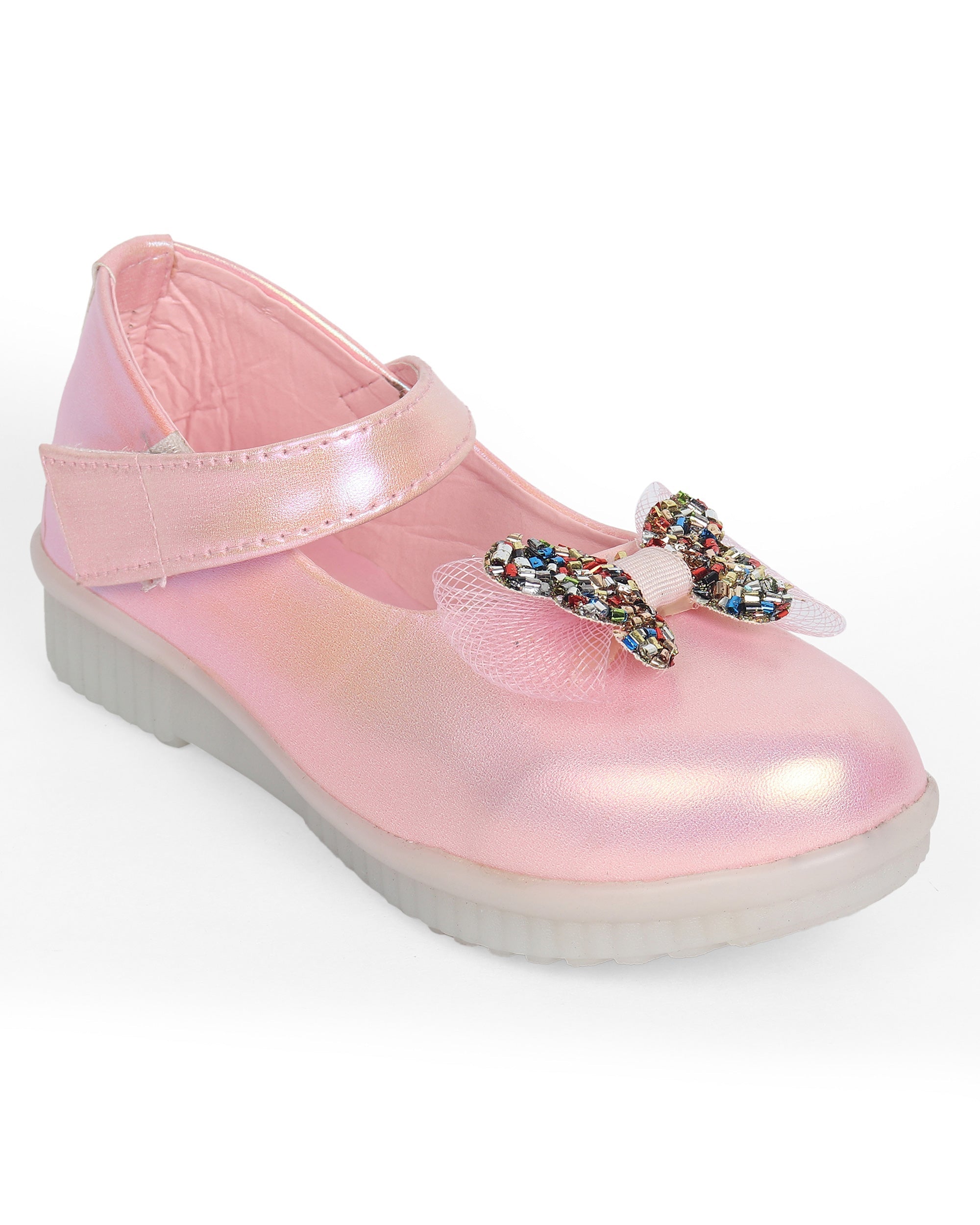 Designed for little trendsetters, these Freeplay Baby Girl Bellies feature a soft faux leather finish and sparkling glitter bow embellishments. The Velcro ankle loop ensures a secure, comfy fit for tiny feet. Perfect for birthday parties, festive gatherings, or stylish everyday wear. Available in pink, brown, black, and golden. Ideal for girls aged 6 months to 4 years.