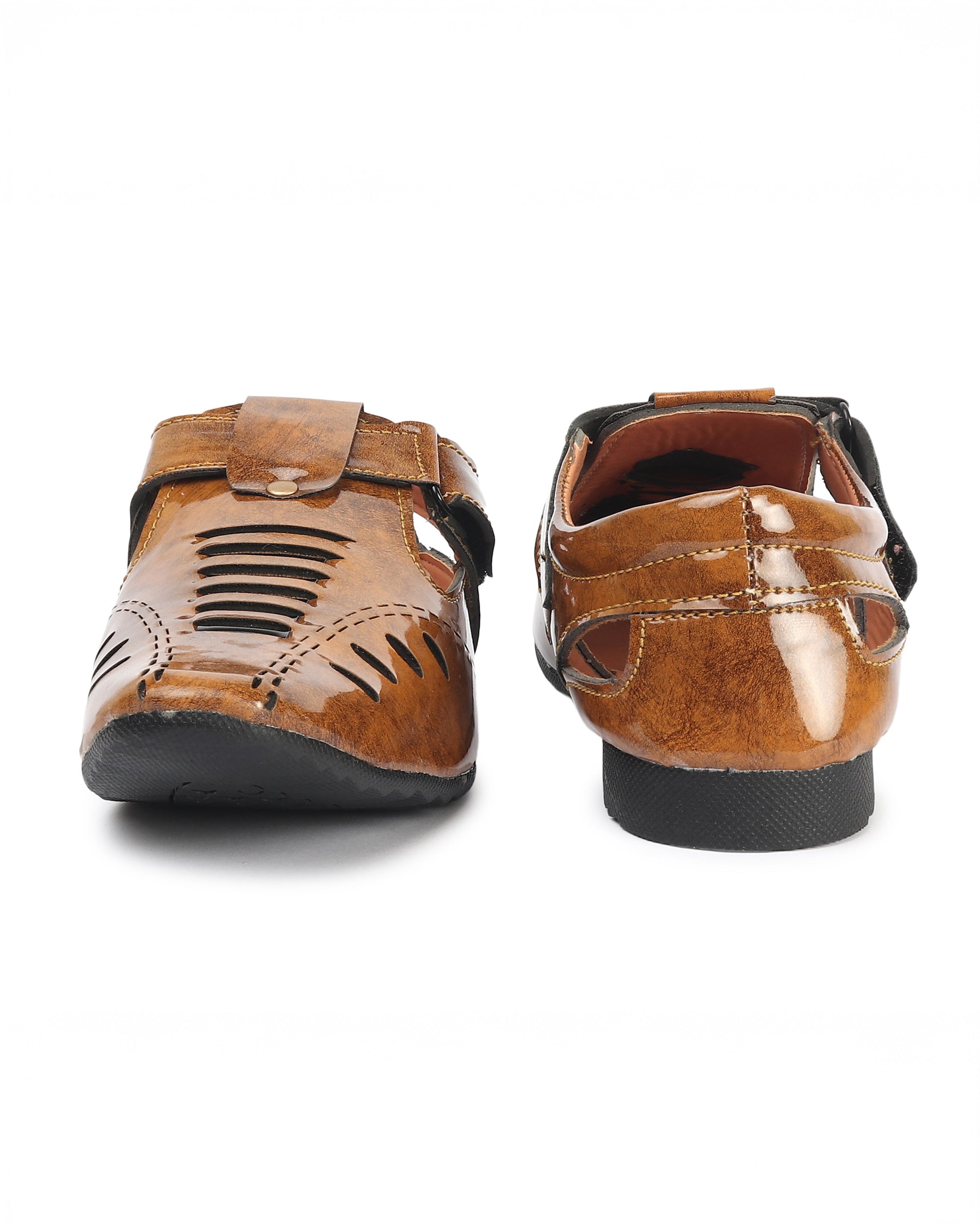 Step into festive fun with Freeplay's boys ethnic sandals—designed in soft faux leather for all-day comfort and traditional style. Perfect for weddings, festivals, and celebrations. Easy Velcro closure makes dressing simple for kids. Available in Tan, Brown, and Black. Ideal boys footwear for ethnic occasions, crafted for comfort, style, and affordability.