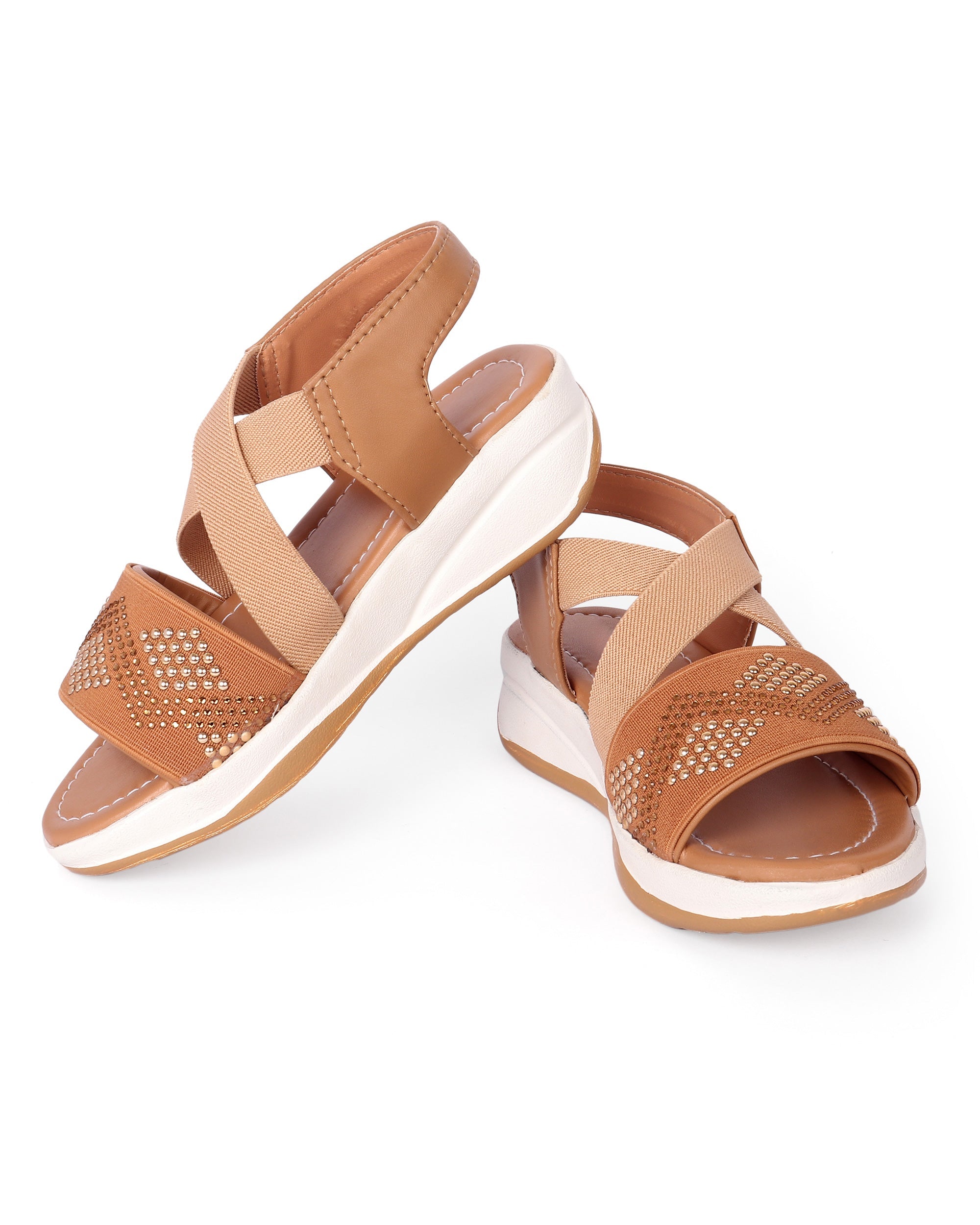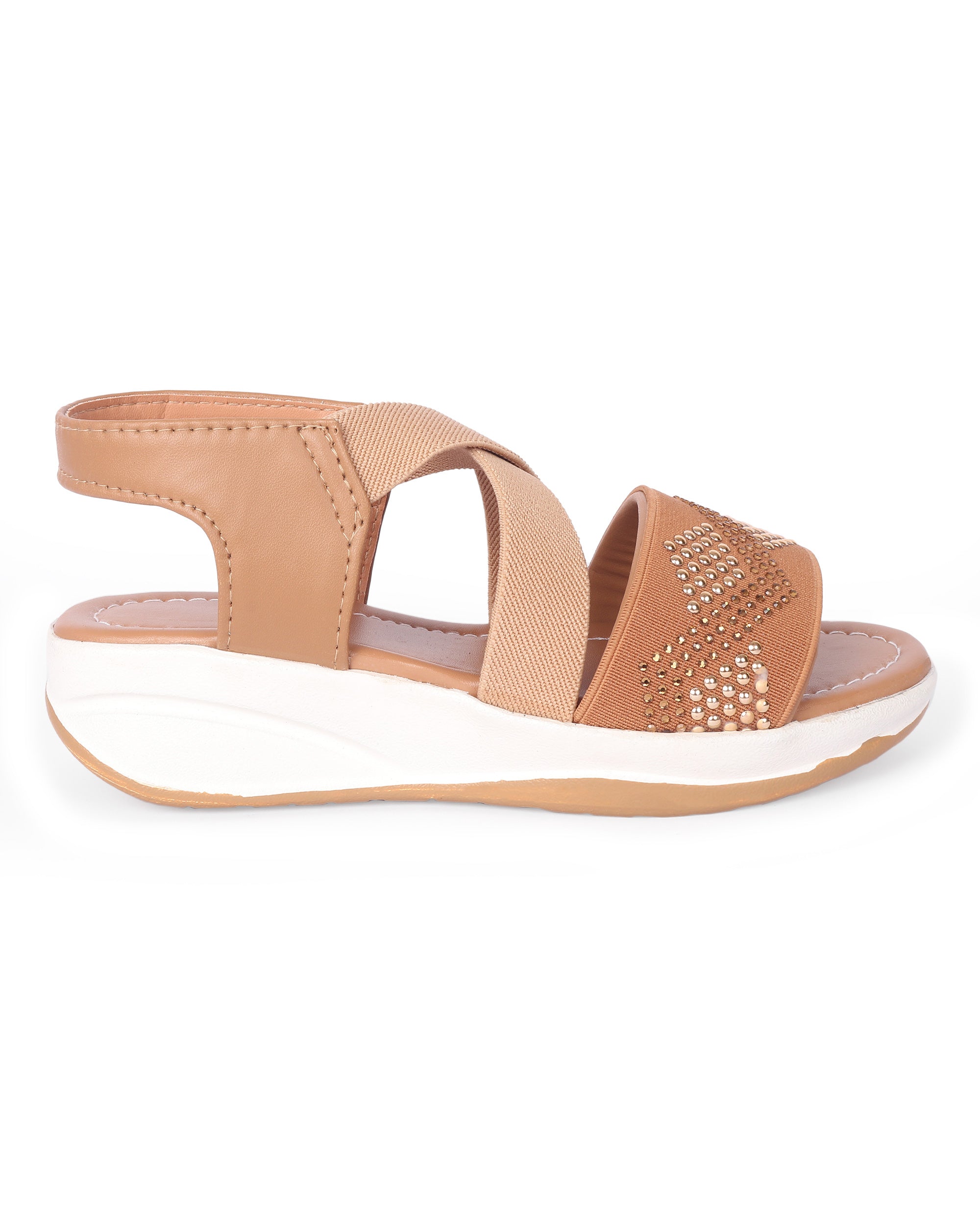 Step up your girl's style with Freeplay’s trendy platform slip-on sandals — perfect for parties and smart casual days. Crafted from soft faux leather with eye-catching embellishments, they offer comfort, glam, and easy wear. Available in pink, brown, blue, and green. Ideal for girls aged 4–9. Handcrafted in India for everyday fun and festive moments.