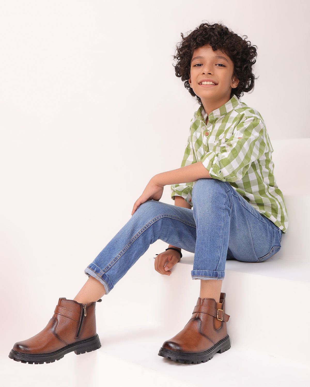 Make a fearless fashion statement with Freeplay Boys Bold Boots. Designed with a chunky heel, rugged sole, and sleek slip-on fit with a convinient zip closure, these boots offer both style and strength. Lightweight yet sturdy, they keep boys looking sharp and feeling comfortable all day long.