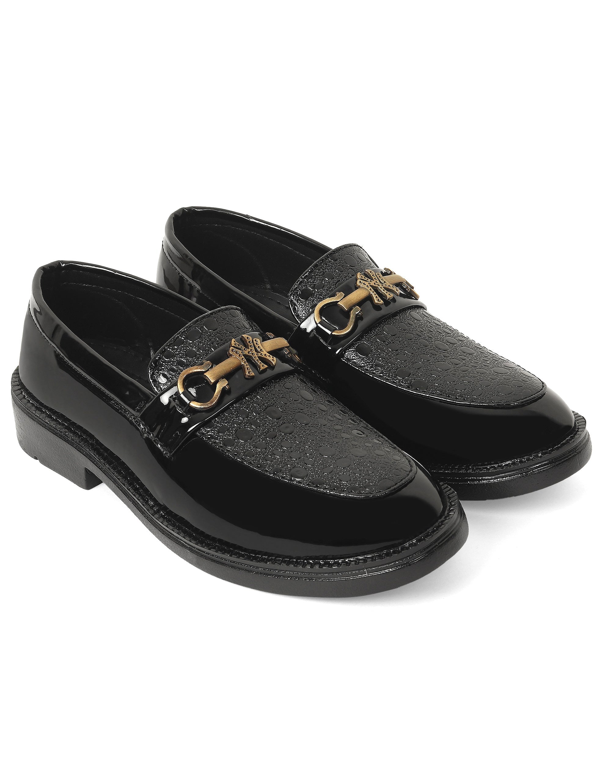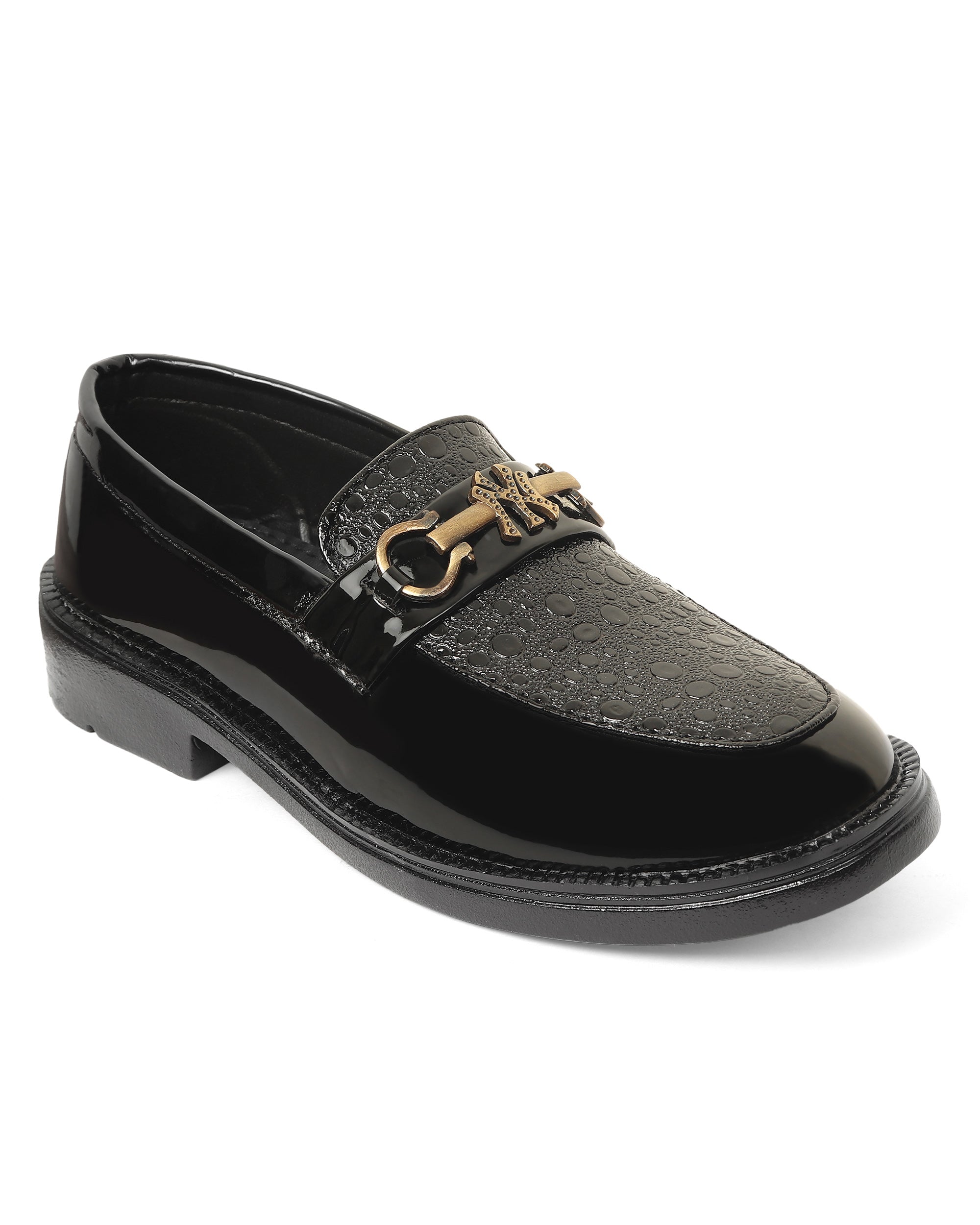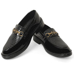 Freeplay boys’ fashion loafers in glossy black, brown, and tan with gold buckle and textured detail. Perfect for weddings, parties, and stylish festive dressing.