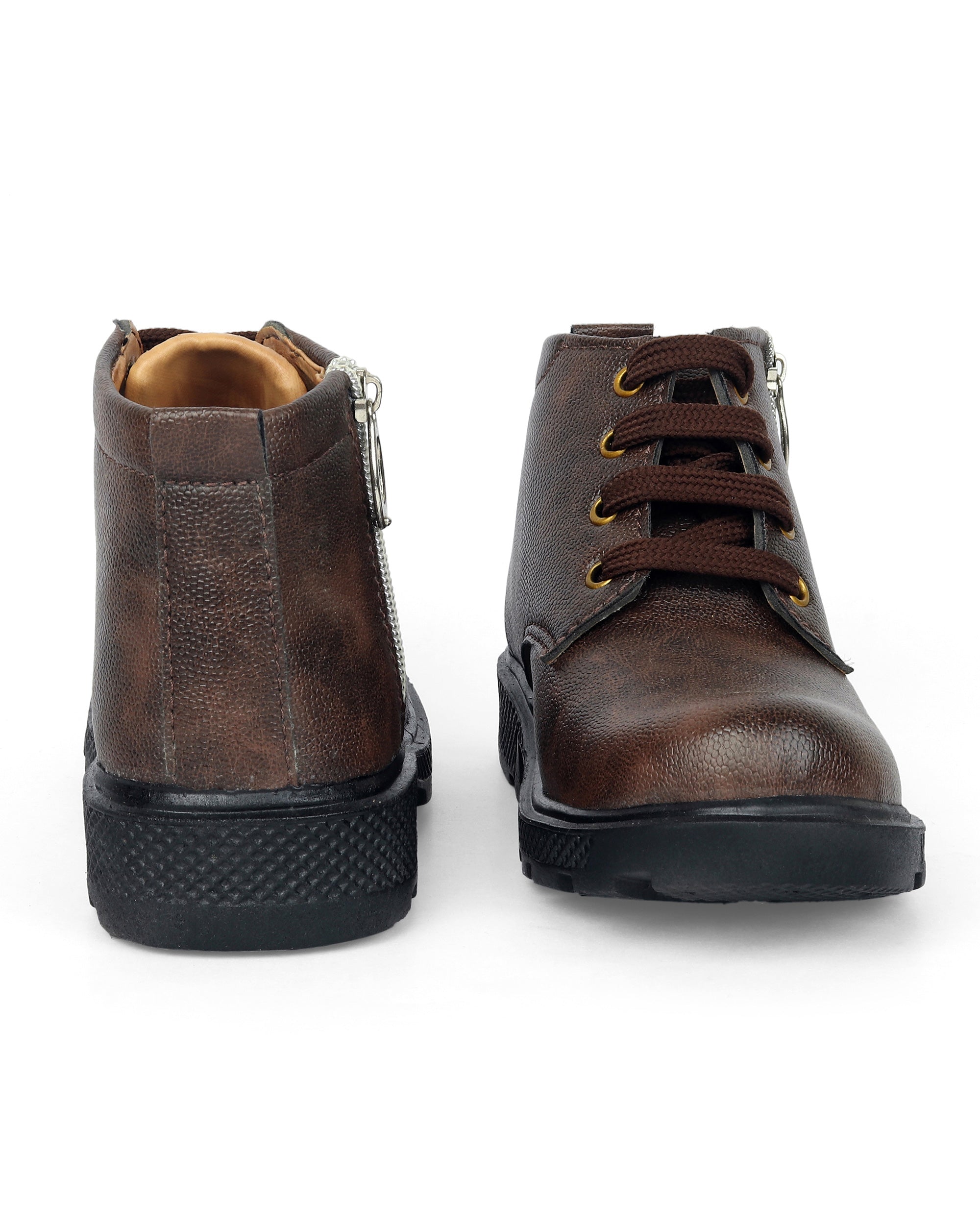 Tough yet stylish, Freeplay boys’ boots feature lace-up design and zip closure for easy wear. Perfect for ages 2.5 to 9 years. Available in black, brown, and tan-ideal for outdoor play and smart casual looks.