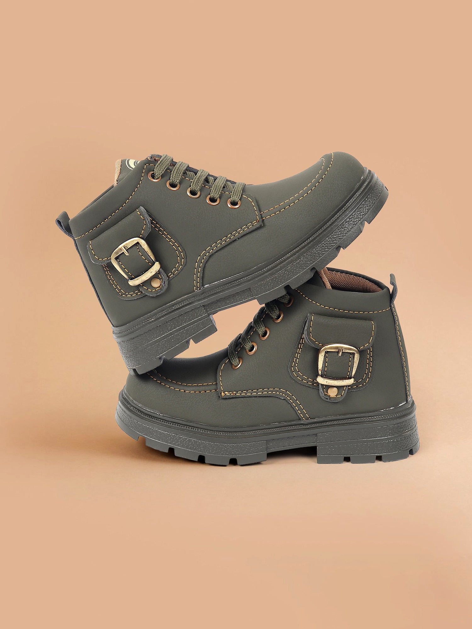 Adventure-ready and full of style! These Freeplay boys’ lace-up boots come in four versatile colors, featuring a cool buckle pouch detail and chunky sole for all-day comfort and grip. Made with durable faux leather, they’re perfect for Outings, playdates, or Special Occassions. Tough, trendy, and easy to wear—just what little explorers need.