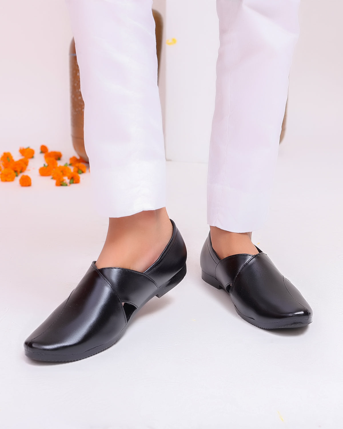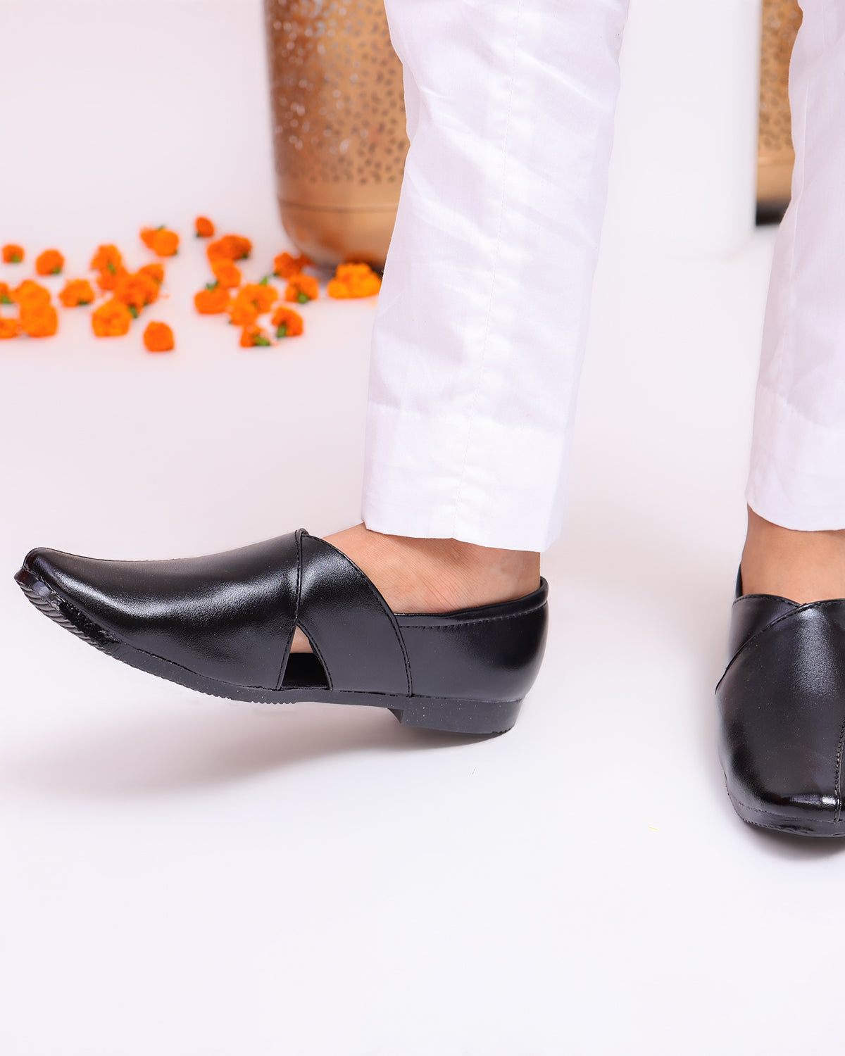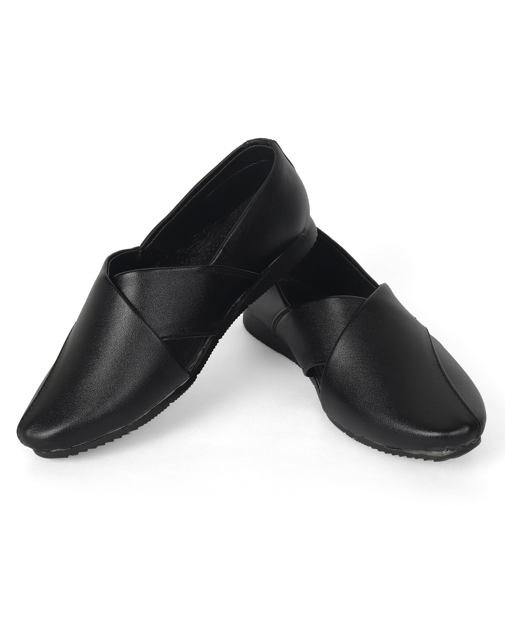 Freeplay boys’ Peshawari jutis come in a sophisticated matte PU finish for a modern ethnic vibe. Lightweight and flexible, they’re perfect for family gatherings, weddings, or everyday Indo-Western looks. Choose from black, brown, or tan to give your little one an elegant yet comfortable traditional touch.