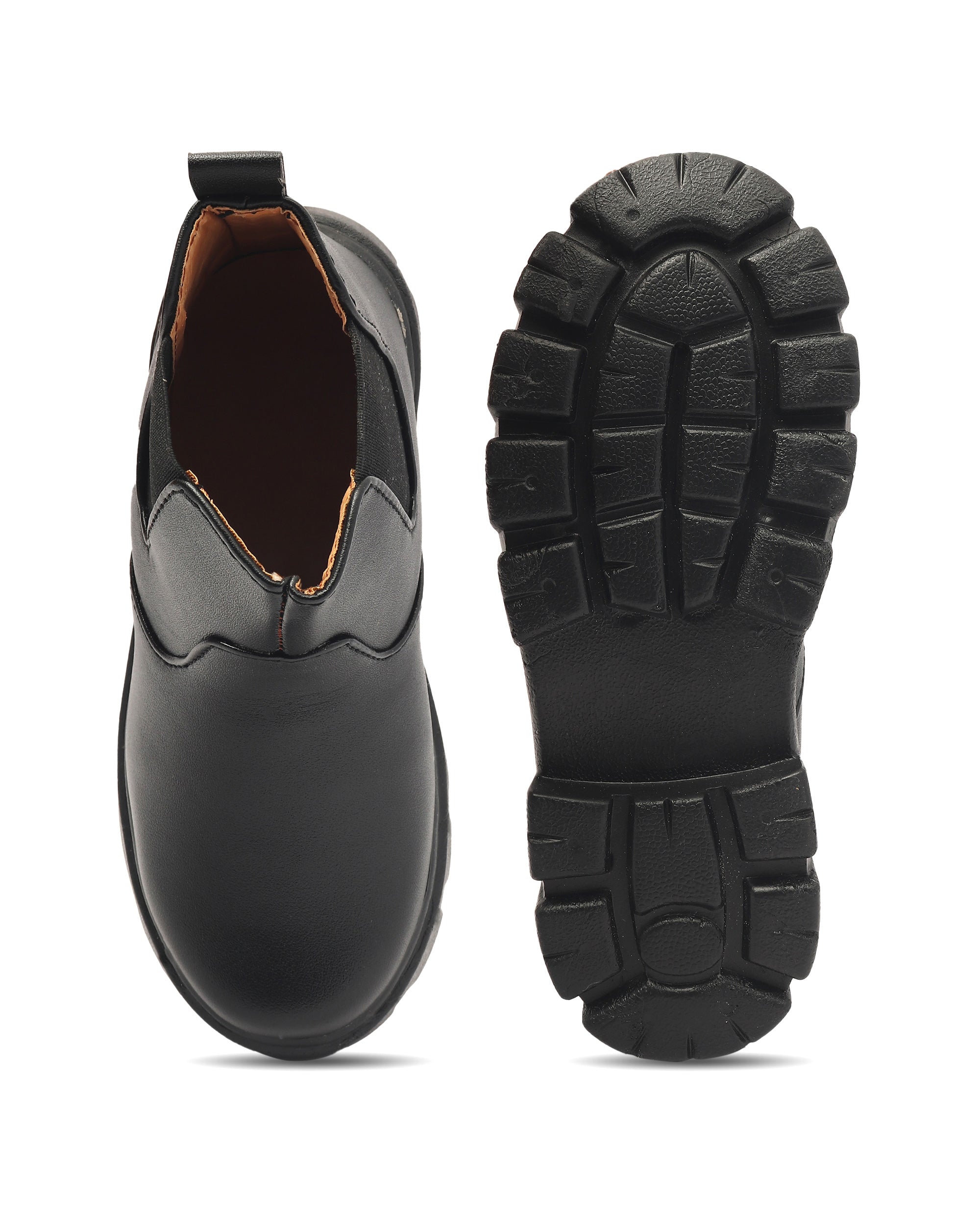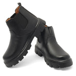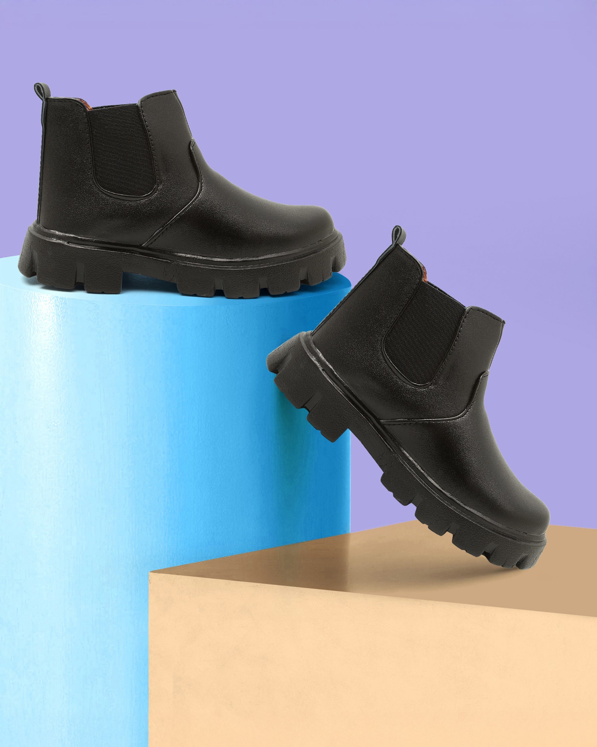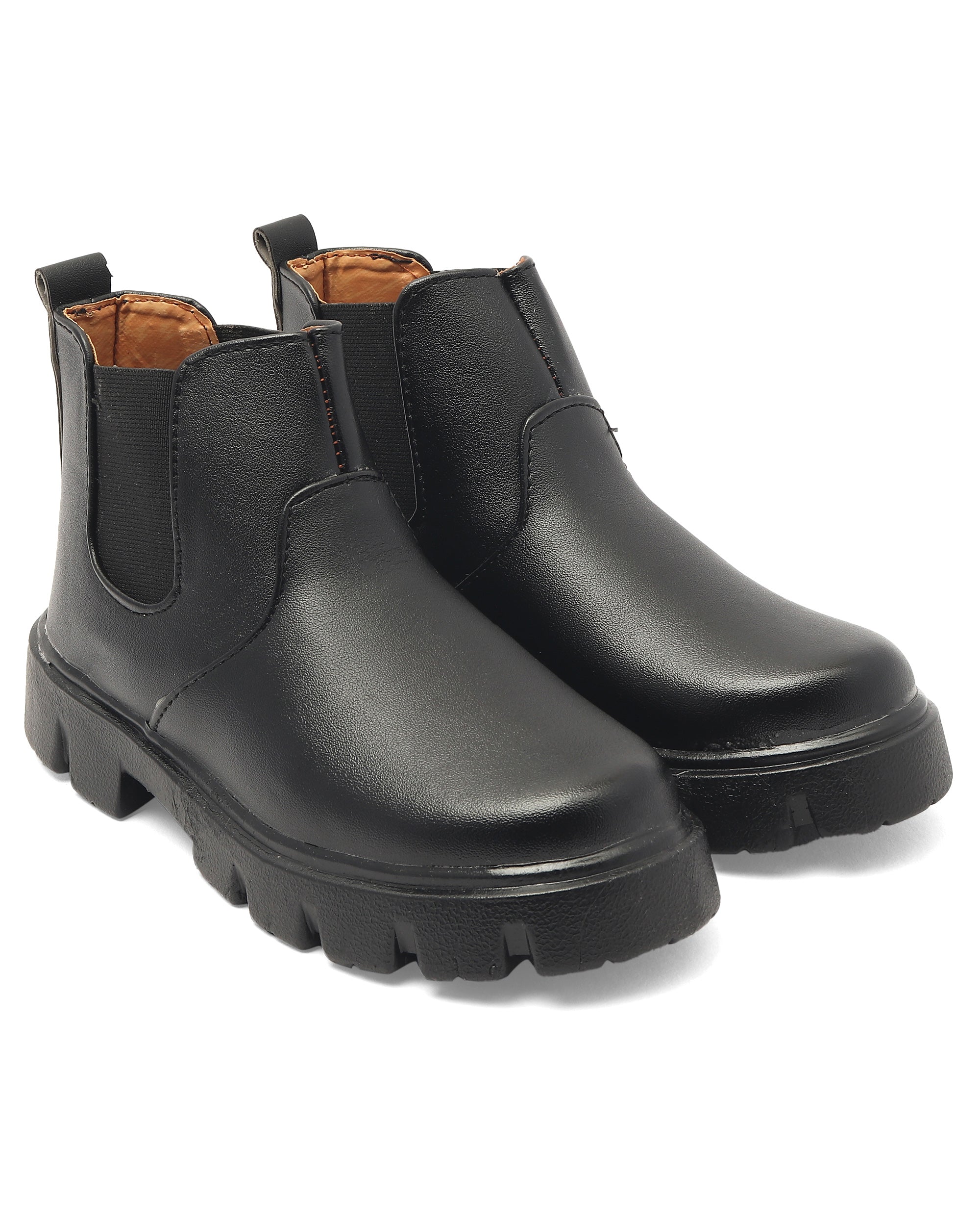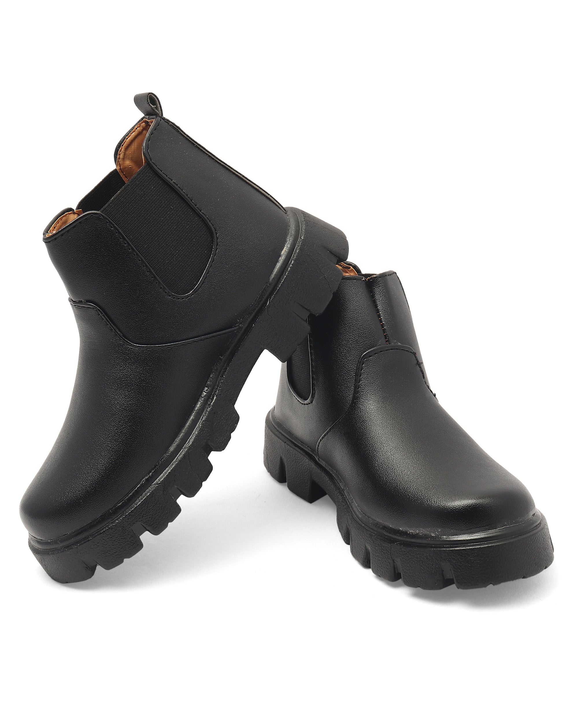 Add a rugged edge to your boy’s look with Freeplay’s stylish slip-on boots. Featuring a chunky heel and easy-on elastic sides, these boots offer both comfort and attitude. Perfect for casual outings or dressier occasions. Available in classic black, brown, and tan for boys aged 3 to 10 years.