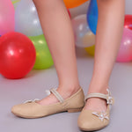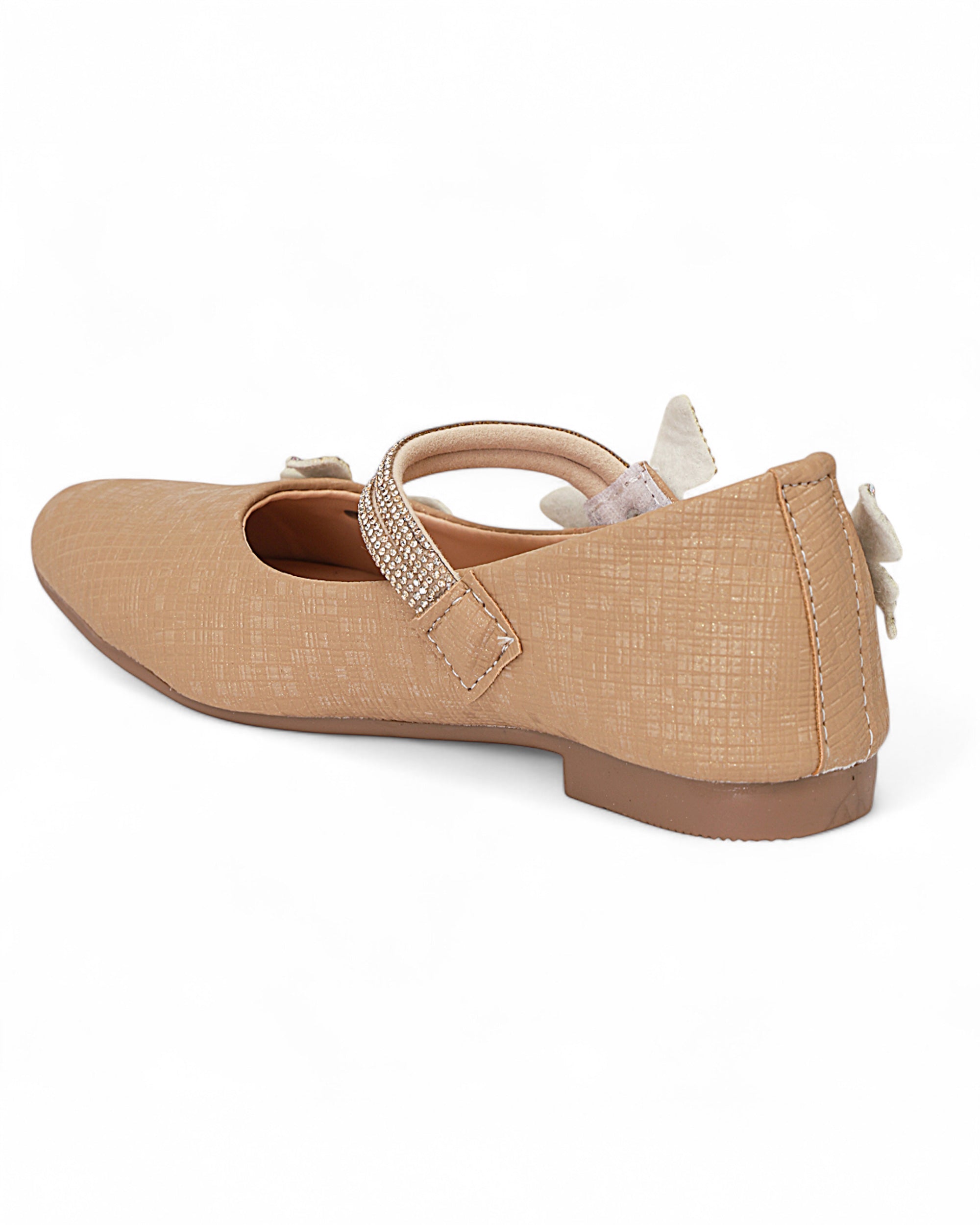 Delicate and dazzling, Freeplay Girls Butterfly Bellies bring a magical touch to every festive outfit. Featuring pearl-studded butterfly embellishments, a shimmery ankle strap, and soft faux leather comfort, these party-perfect flats ensure both charm and ease. Ideal for weddings, birthdays, or festive celebrations. Available in black, beige, and pink. Fits girls aged 2.5–9 years.