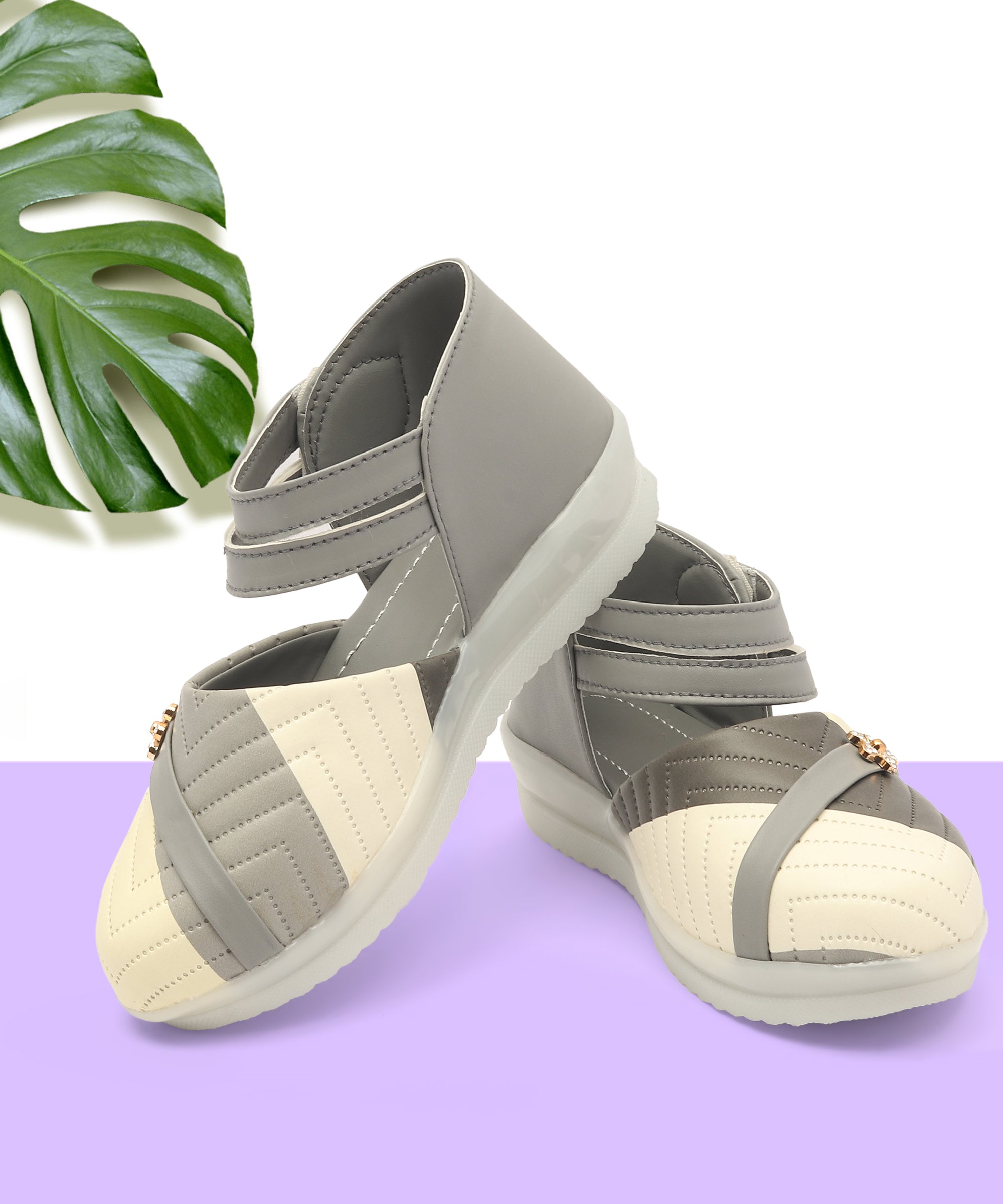 Step into all-day comfort with Freeplay Girls Closed-Toe Sandals, designed with soft faux leather, pastel color-blocking, and a pretty embellished flower detail. The Velcro strap ensures a snug, fuss-free fit for every occasion—whether it’s a casual day out or a festive gathering. Available in pink, brown, black, and white. Perfect for girls aged 2.5–9 years.