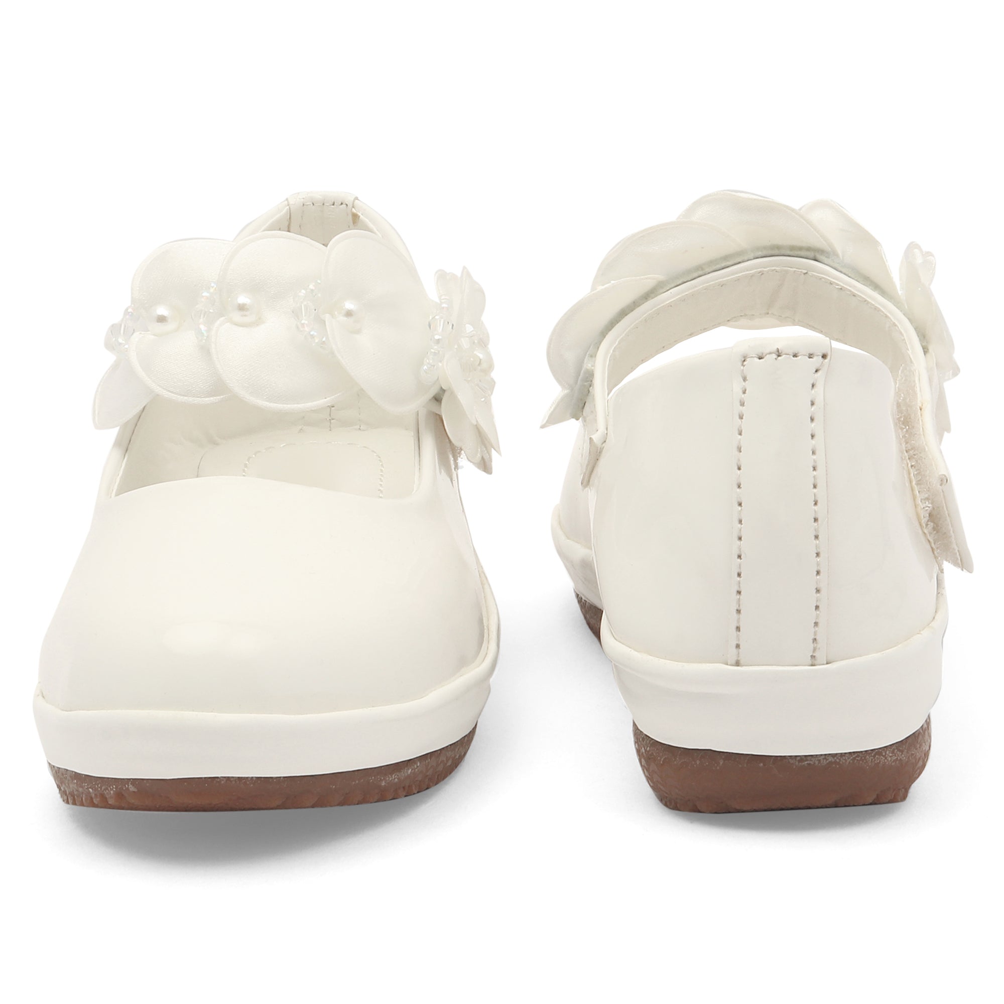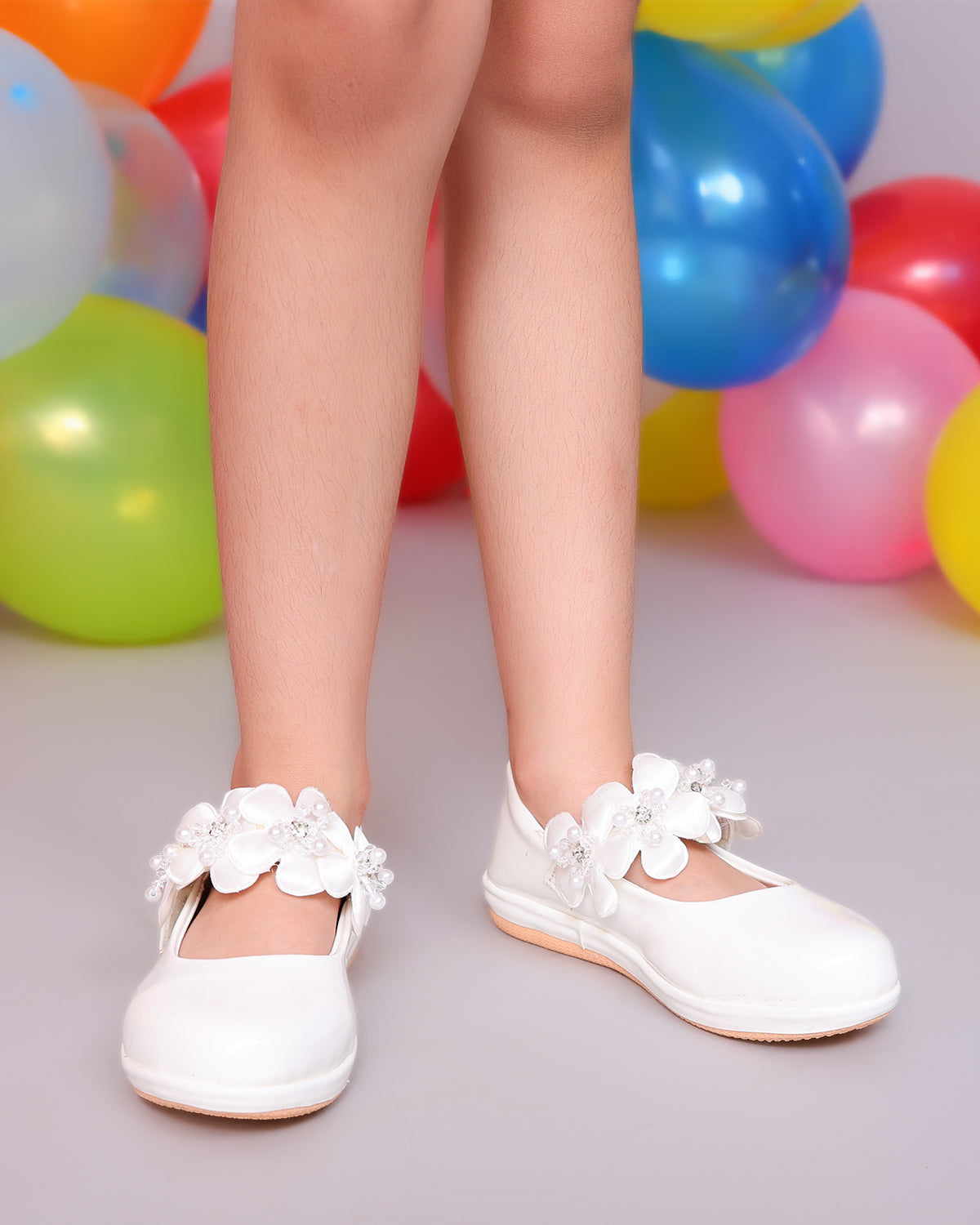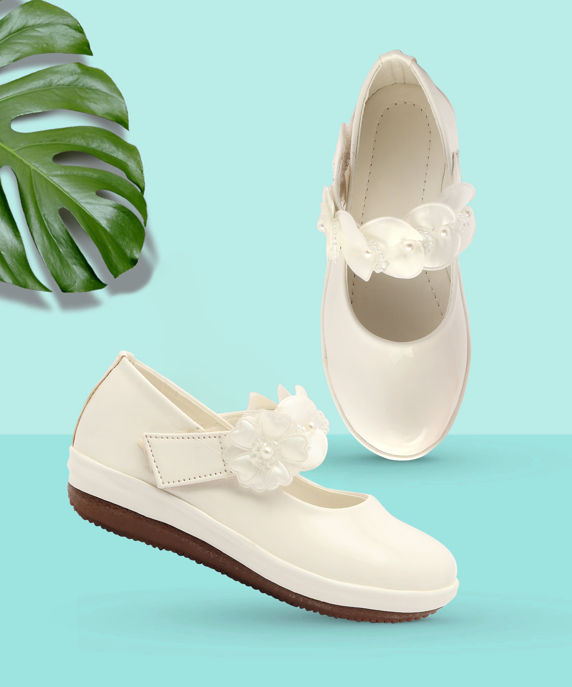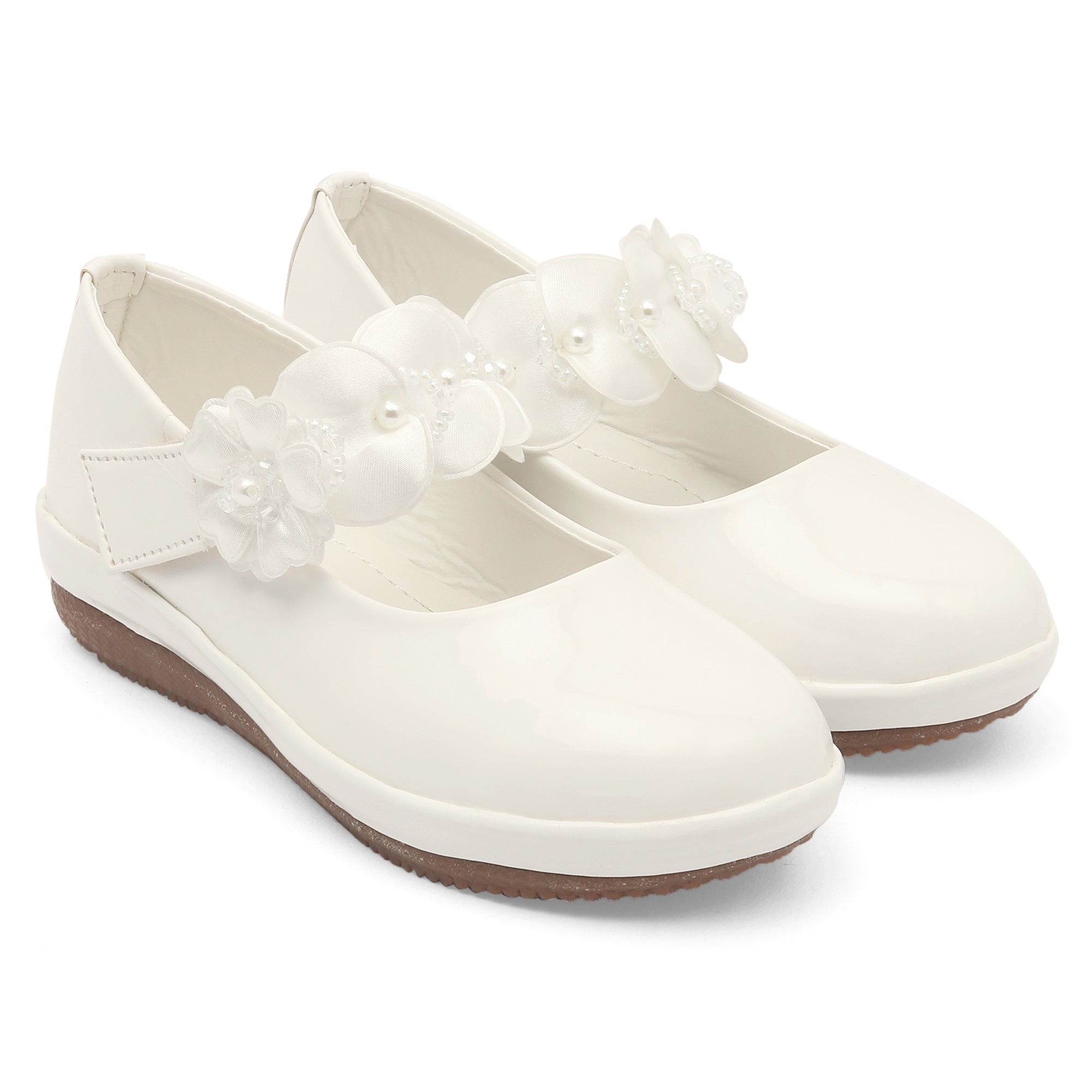 Delicate, dreamy, and designed for comfort—Freeplay Girls Flat Bellies feature a glossy faux leather finish and a floral-embellished ankle loop strap. With an easy Velcro closure and cushioned sole, they’re perfect for parties, weddings, or dressy days out. Available in pink, brown, black, and white. Ideal for girls aged 2.5–9 years.