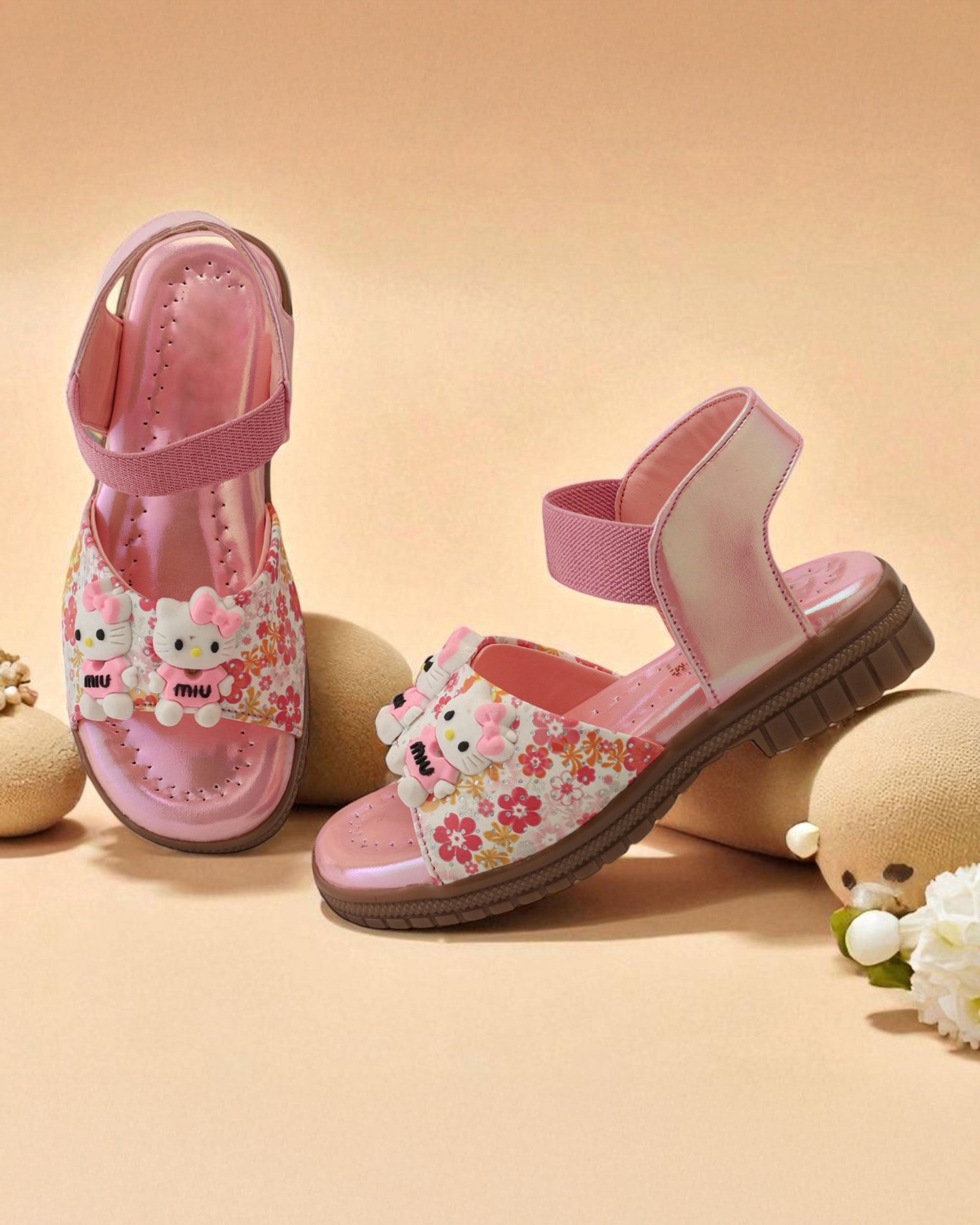 Let your little one step out in style with Freeplay's adorable flat sandals. Designed with playful teddy embellishments and floral printed PU material, these slip-on sandals are perfect for casual outings and party fun. Soft soles and an easy fit keep comfort in check. Available in pink, beige, white, and brown for ages 4–9 years.