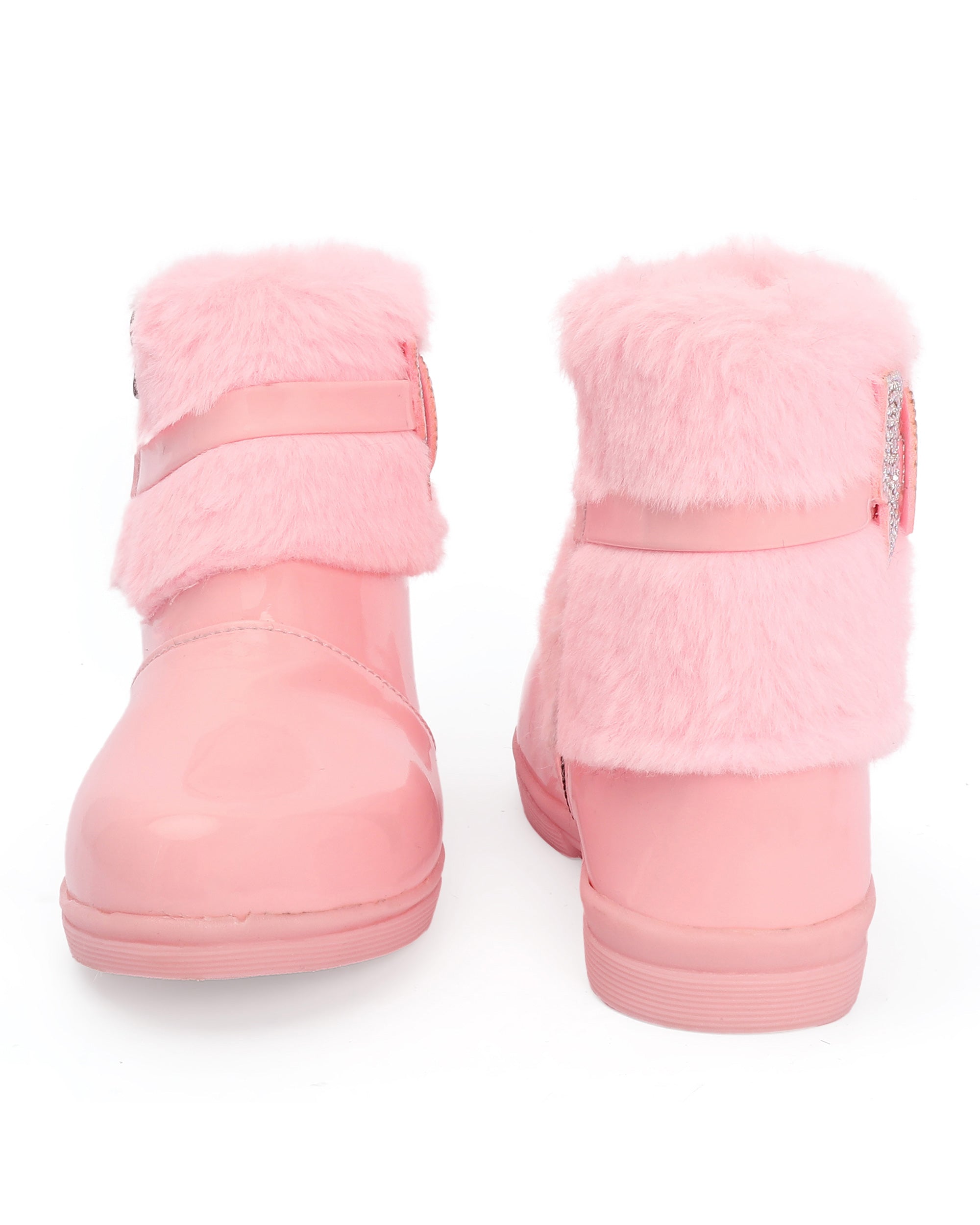 Stylish and sparkly! These trendy boots for girls feature soft faux fur, a glittery bow, and easy zip closure for fuss-free wear. Designed for everyday glam—perfect for parties, playdates, or outings. Available in 5 fabulous colors: Pink, Light Brown, White, Black, and Grey.