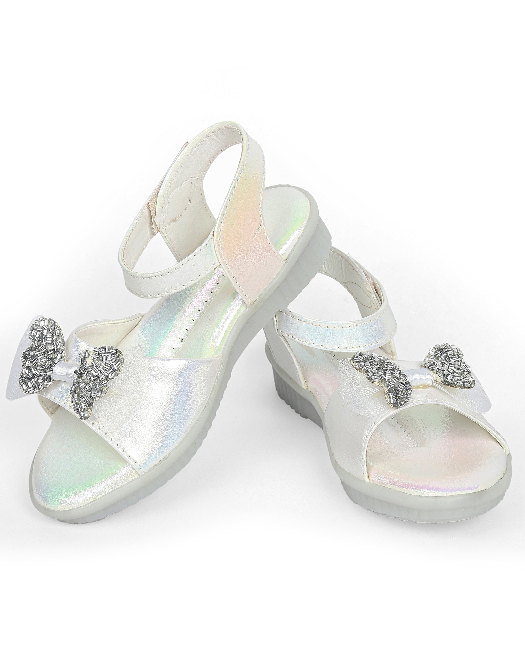 Freeplay Baby Girls Flat Sandals with Sparkly Bow Embellishments