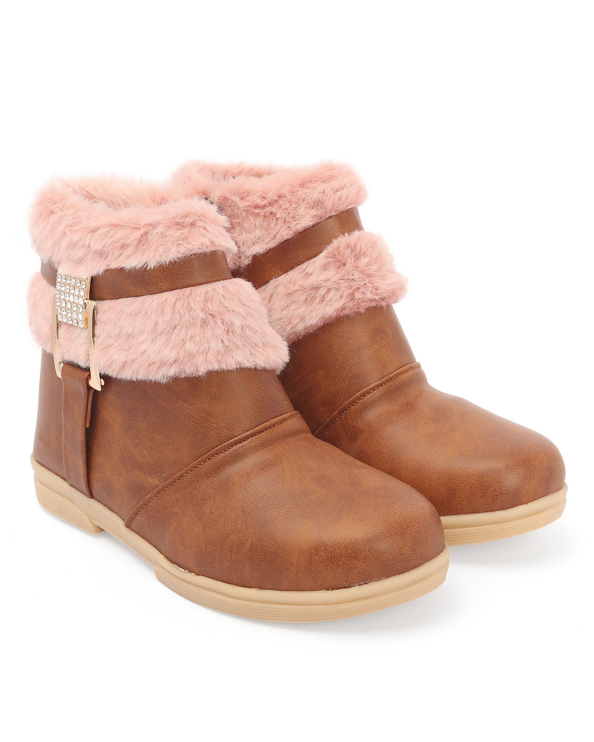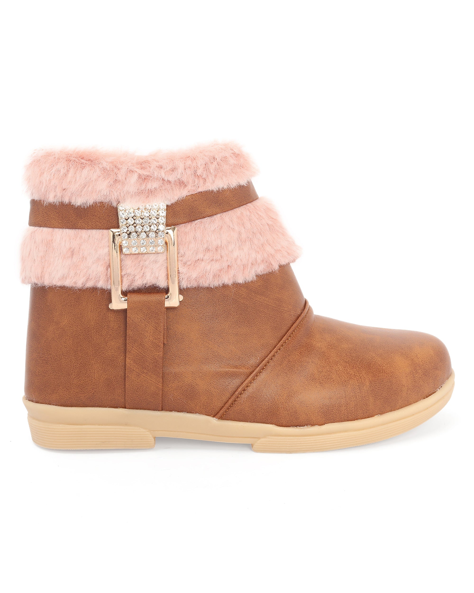 Stylish and comfy, these zip-up boots with a matte look and a glittery buckle bring a cool edge to your girl's outfit. Great for day-outs, birthdays, or any playful occasion. Comes in four colors - Black, Tan, Pink, and Beige, to match every outfit and mood.